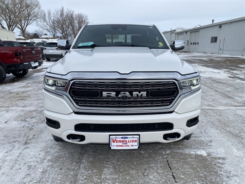 Recent Arrival! Ivory White Tri-Coat Pearlcoat **ONE OWNER LOCAL TRADE**, 1500 Limited, HEMI 5.7L V8 Multi Displacement VVT eTorque, Adaptive Cruise Control w/Stop & Go, Body Color Bumper Group, Body Color Front Bumper, Body Color Rear Bumper w/Step Pads, Digital Rearview Mirror, Exterior 115V AC Outlet, Heads-Up Display, Lane Keep Assist, LED CHMSL Lamp, Limited Level 1 Equipment Group, MOPAR Spray In Bedliner, Parallel & Perp Park Assist w/Stop, ParkSense Front/Rear Park Assist w/Stop, Pedestrian Emergency Braking, Pick-Up Box Lighting, Power Running Boards, Quick Order Package 27M Limited, RamBox Cargo Management System, Surround View Camera System, Tailgate Ajar Warning Lamp, Wheels: 20`` x 9`` Aluminum Painted/Polished, Wireless Charging Pad.2023 Ram 1500 Limited 4D Crew Cab HEMI 5.7L V8 Multi Displacement VVT eTorque 8-Speed Automatic 4WDDon`t miss your chance to SAVE HUGE $$$ at Vermillion Ford!!